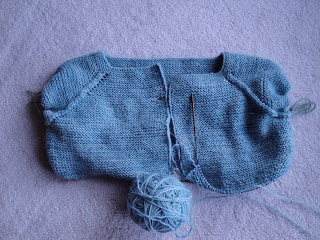 Last week as we opened the house to cool mornings and evenings, I retrieved some of cooler weather knitting projects. I finished the summer knitting on Nice Ribbed Socks in "Vancouver Violet" sock yarn by Blue Moon Fiber Art. I pulled out the Greenfield Cardigan I put away last Spring when having the growing wool/mohair project in my lap was too warm.
